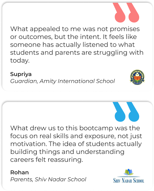 The parent sessions offer an overview of the program, key learnings, and evolving career landscapes. They also focus on how parents can support their child’s wellbeing and decision-making, while providing space to ask questions and plan next steps.